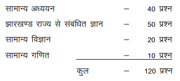 - परीक्षा में सामान्य ज्ञान, झारखंड सामान्य ज्ञान, सामान्य विज्ञान और गणित से प्रश्न पूछे जाएंगे।